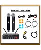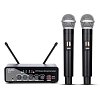 Беспроводная вокальная радиосистема с двумя ручными микрофонами, обеспечивающая работу на расстоянии до 100 метров, питания от элементов типа AA.